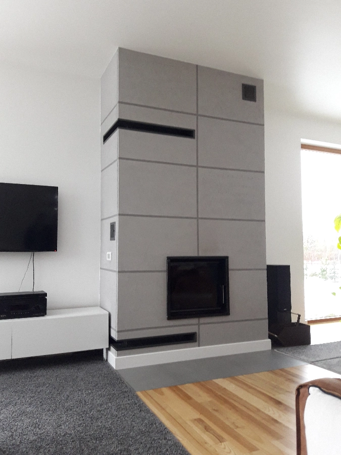 - wykończenie obudowy – tynk, kamień, spieki lub beton architektoniczny,